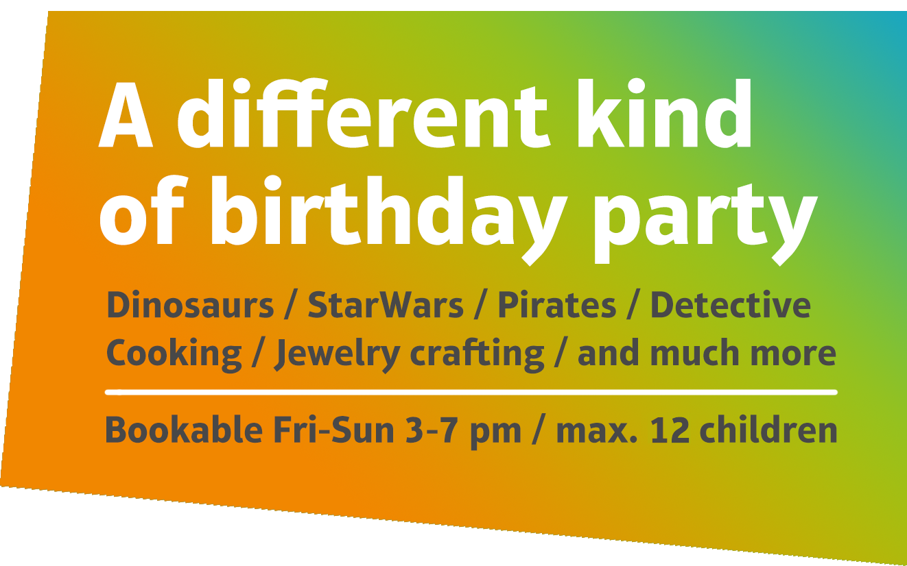 The first time you can celebrate with us when you turn 6 years old. Friday through Sunday, from 14:00-15:30 and 16:30-18:00, children up to 12 years old can come for their birthday or like-minded children for a theme day. We have space for groups up to a maximum of 12 children.