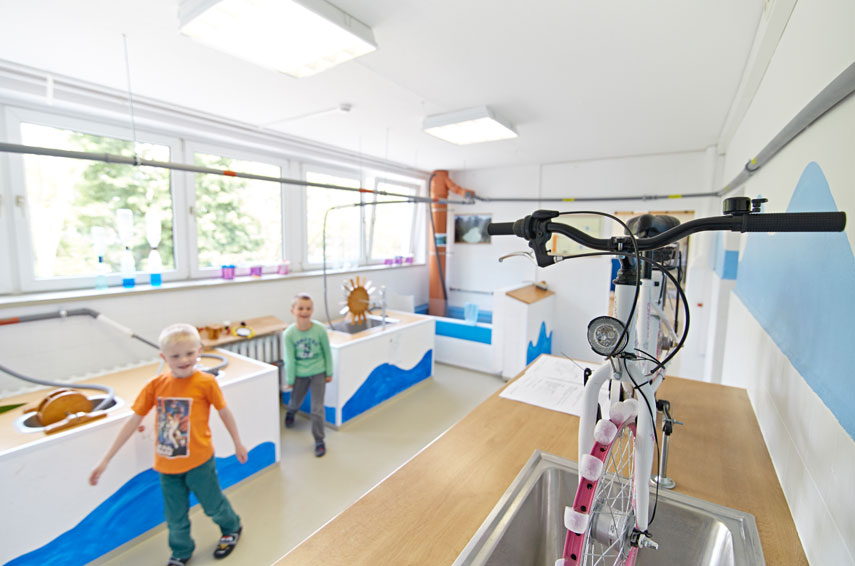 The exhibition is intended to enable children to make their own experiences, to experiment, to "grasp" phenomena. In 6 exhibition rooms we have paid special attention with experimental setups and display boards to the key topic of our time: "renewable energies".